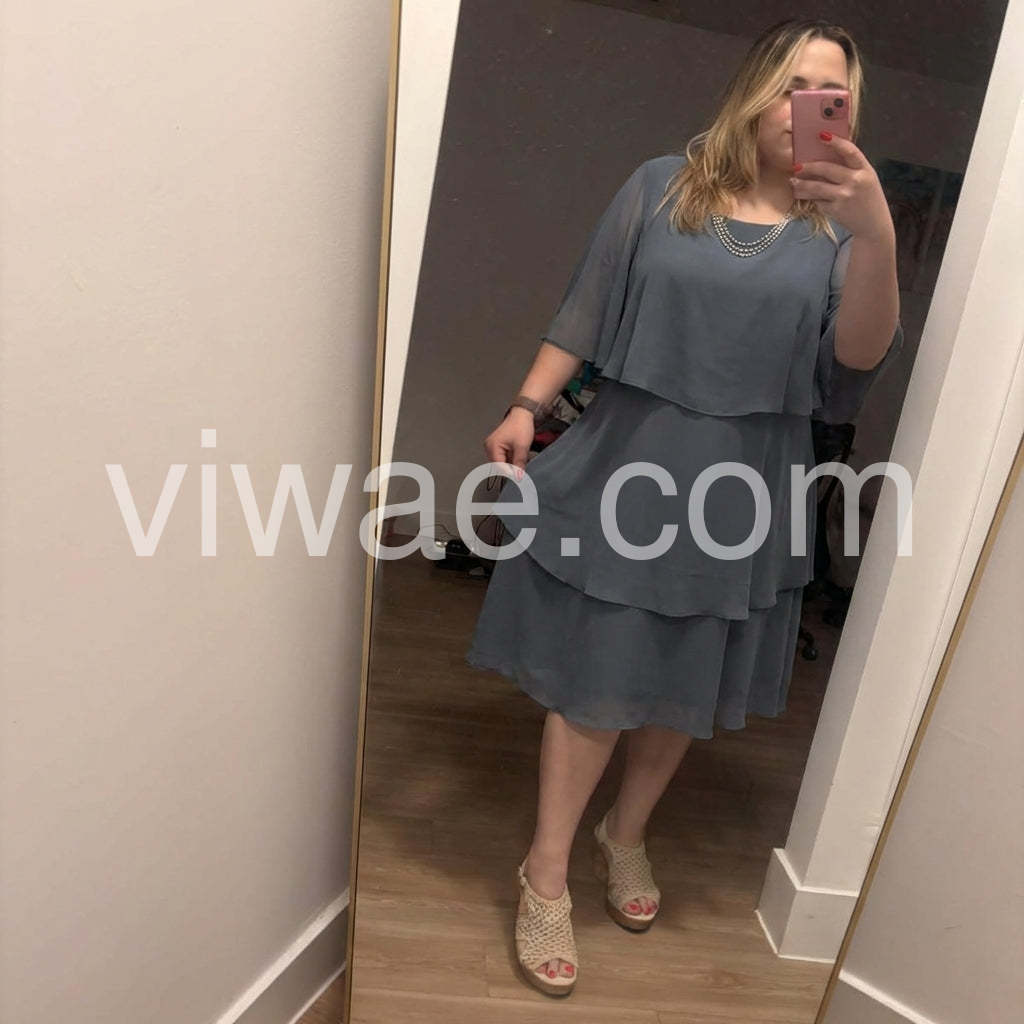 I bought this dress for my daughter's wedding and it was absolutely perfect. The layered design is incredibly flattering and hides any tummy flaws beautifully. The chiffon material flows elegantly as you walk. Highly recommend!