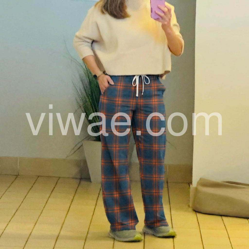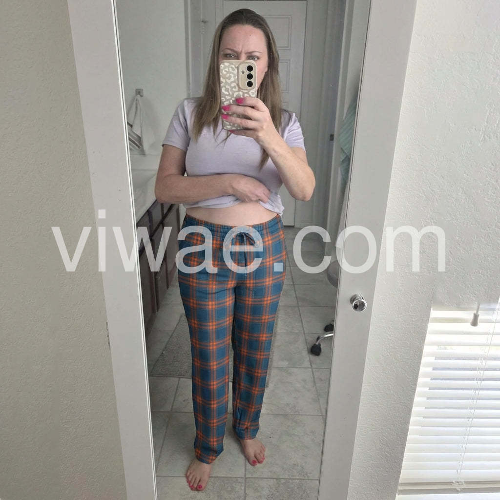 Loved the look you pulled off with those blue and orange plaid pants. They pair so well with the simple sandals, giving off a relaxed, stylish vibe perfect for a casual day out.