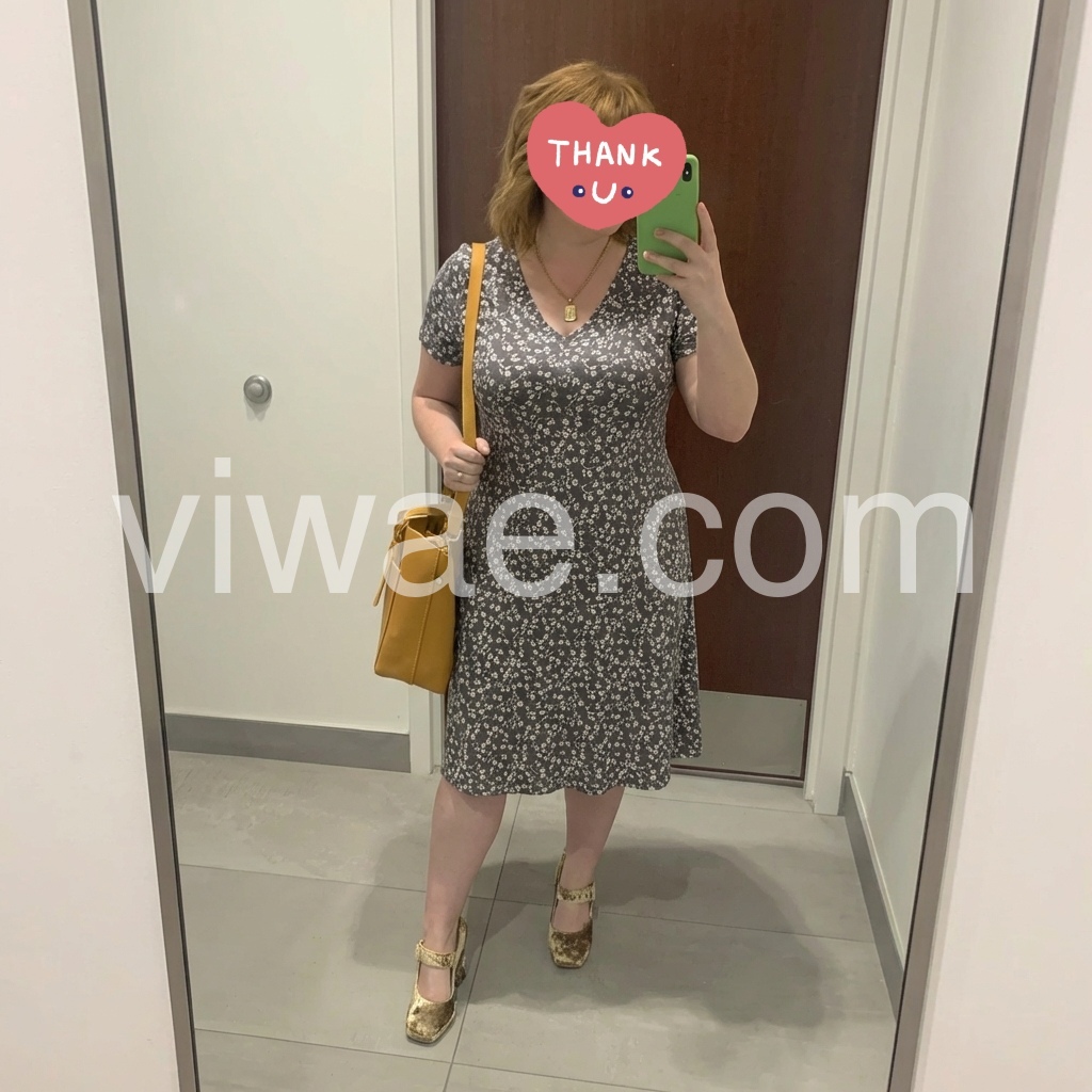 The V-neck and short sleeves keep it light and breezy, while the fitted waist and flowy skirt hug my curves just right. I love how it swishes when I walk!