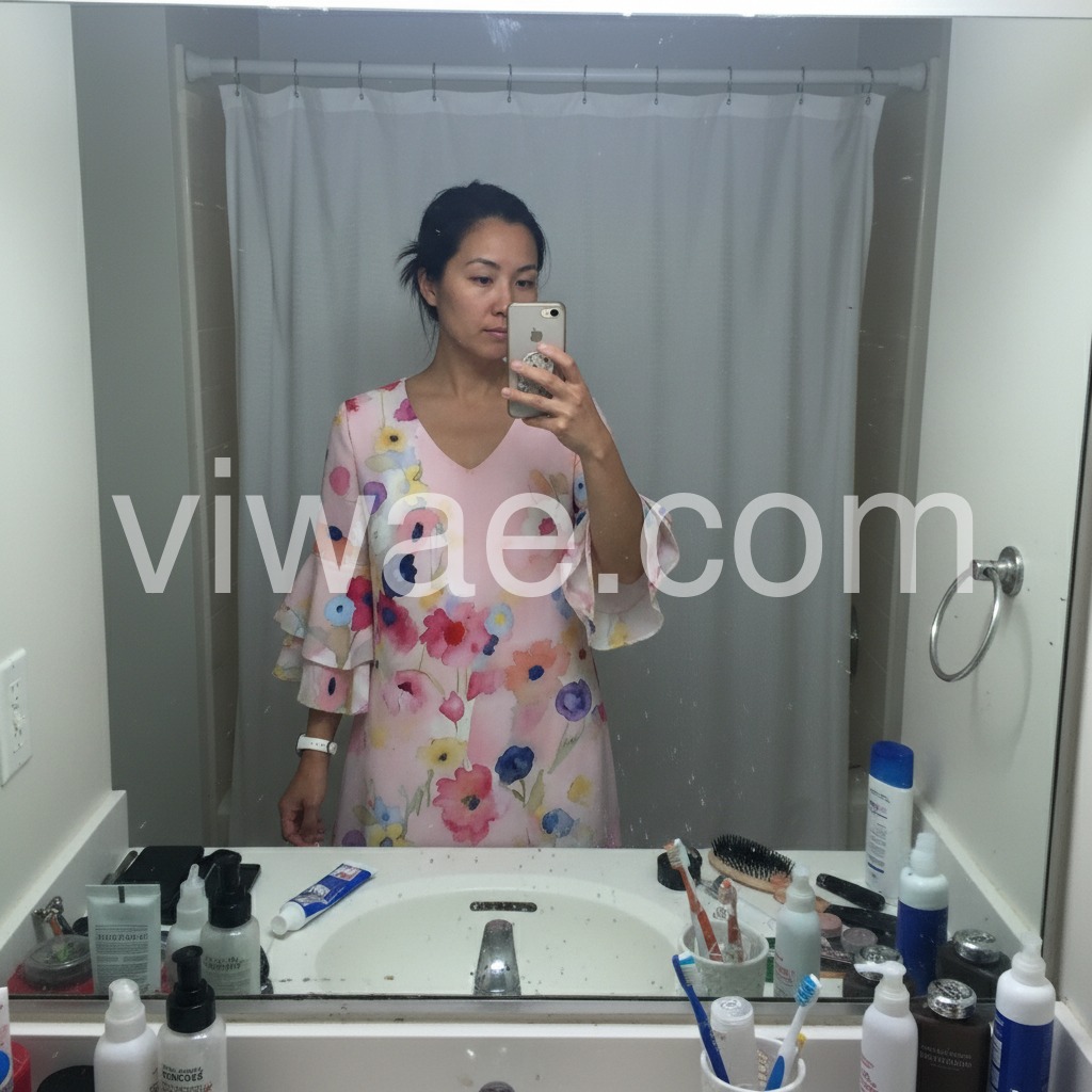 Absolutely love this dress! The watercolor floral pattern is so beautiful in person. The fit is incredibly flattering and forgiving without looking like a tent. Perfect for my upcoming spring vacation.