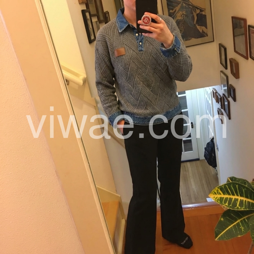 I’m really impressed with this sweater. The knit pattern is beautiful and the overall design feels thoughtfully made. I like that it pairs perfectly with jeans and also works with a skirt for a more put-together look. The collar area looks neat, and the sweater lays nicely on the body. Definitely a new favorite in my closet.