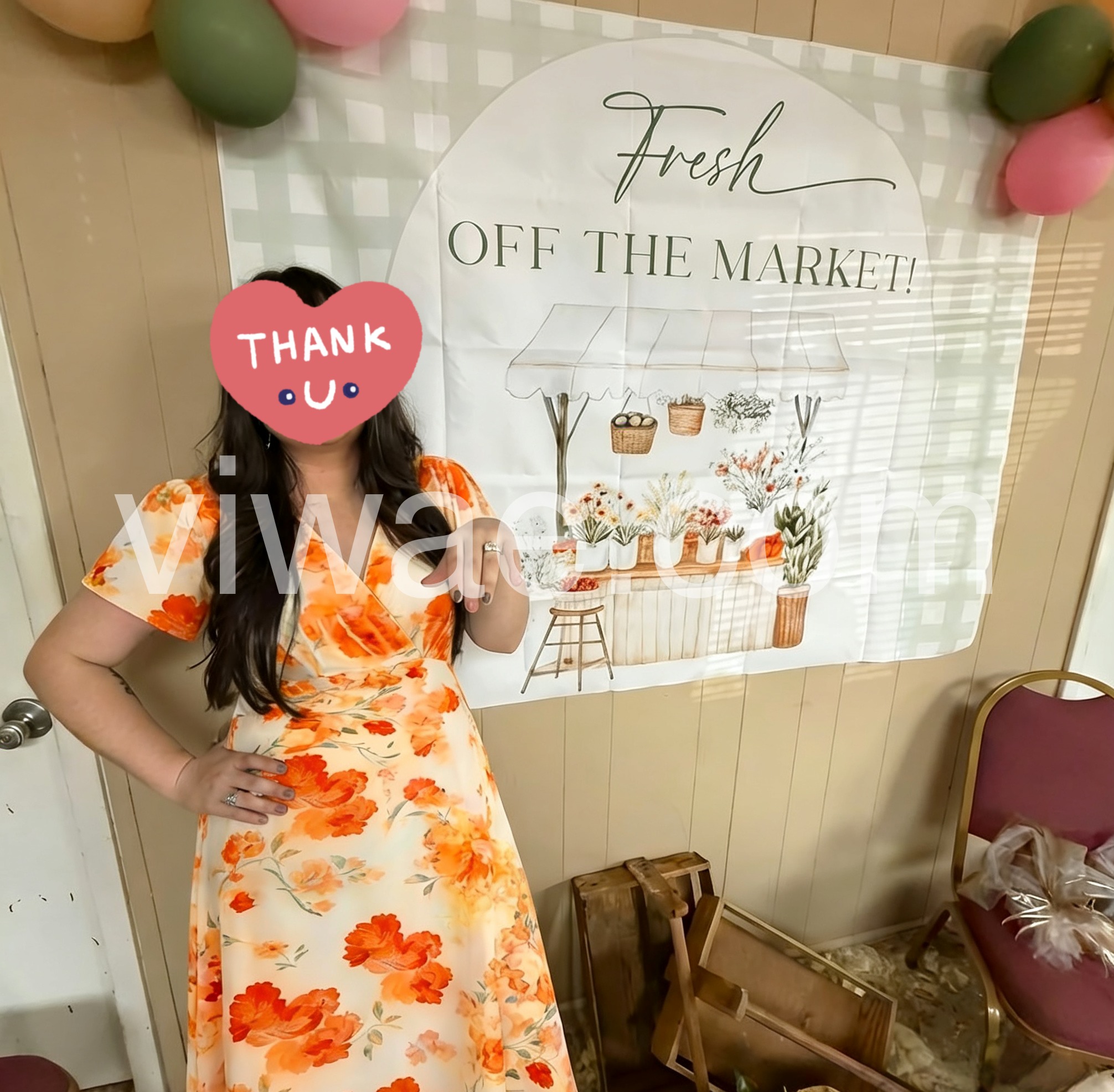 Orange Floral V-Neck Wrap Midi Dress