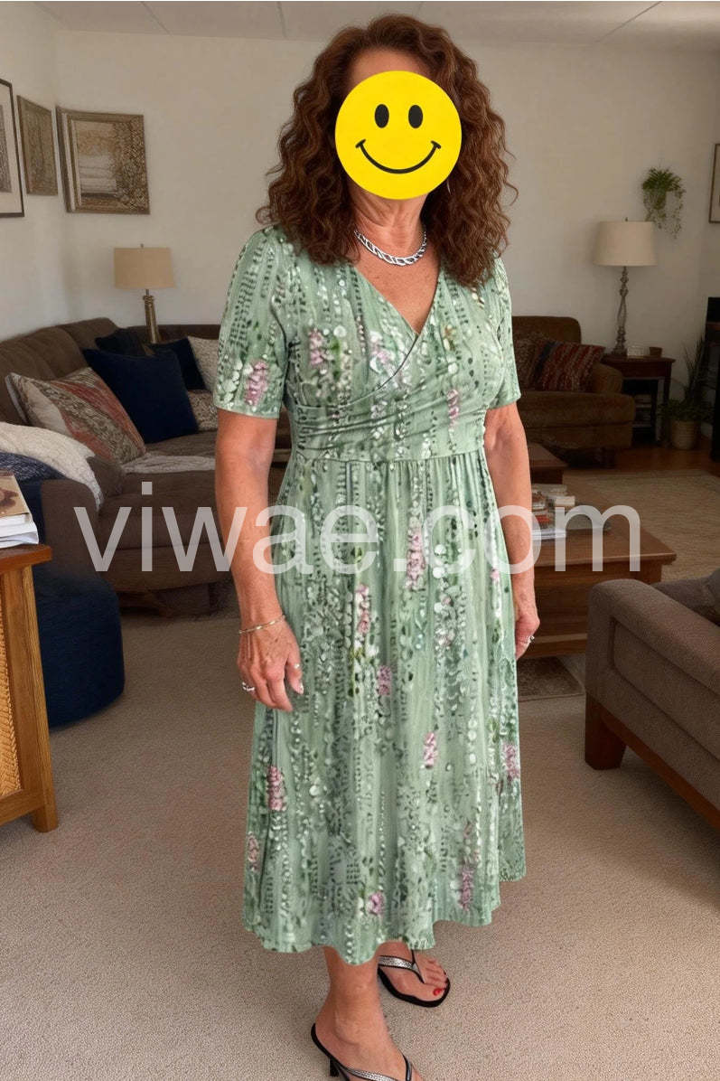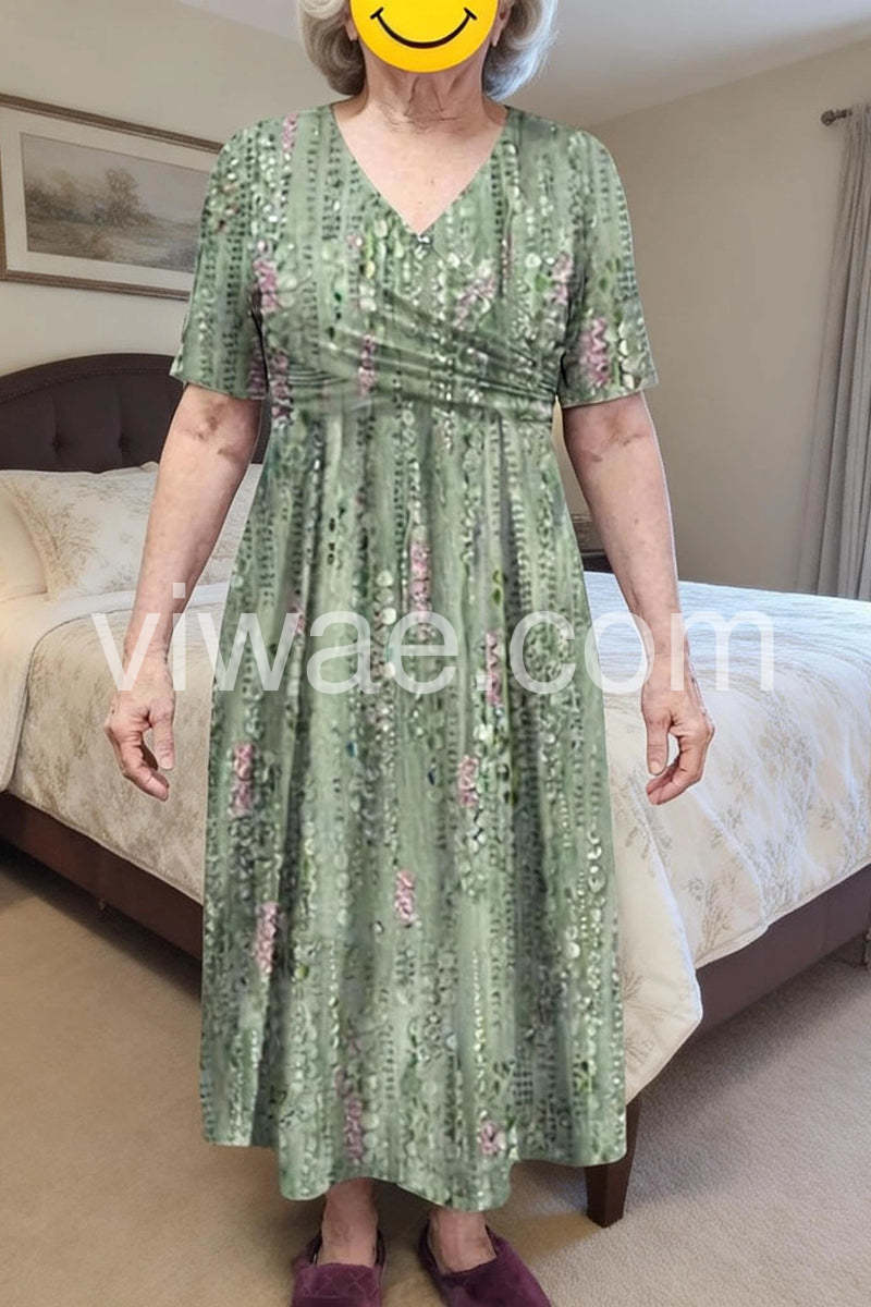 Green Plant Print Side Pocket Midi Dress
