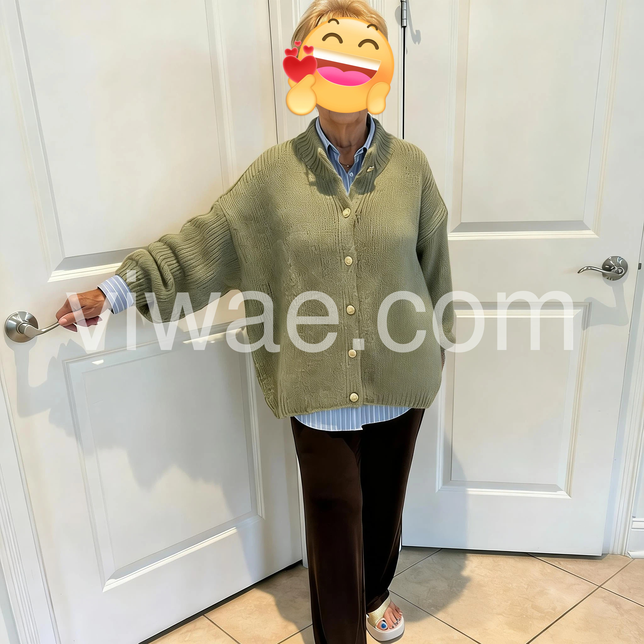 This cardigan is the definition of comfort and style! The thick fuzzy knit keeps me warm without being bulky, and the oversized silhouette is so flattering on all body types. The high neckline with gold buttons adds a polished touch, and the batwing sleeves give it a trendy, laid-back feel. It’s the perfect piece to throw on over any outfit for an instant cozy chic look, and the sage green is such a timeless color. I’ll be wearing this all winter long!