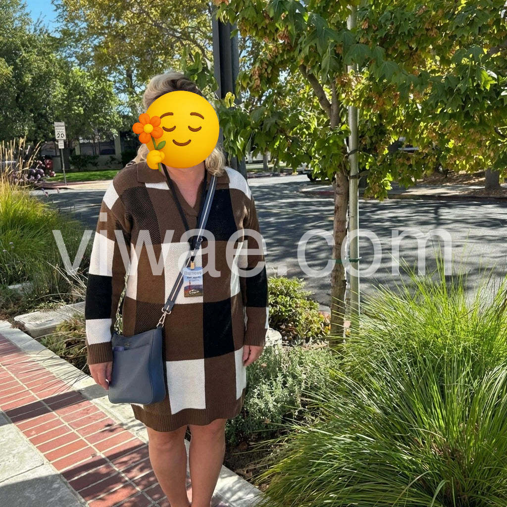 Introducing our Brown V-Neck Long Sleeve Mini Dress. Made from high-quality materials, it's designed to provide both style and comfort. Perfect for any occasion, this dress features a flattering v-neckline and long sleeves for a chic and elegant look. Upgrade your wardrobe with this versatile piece!