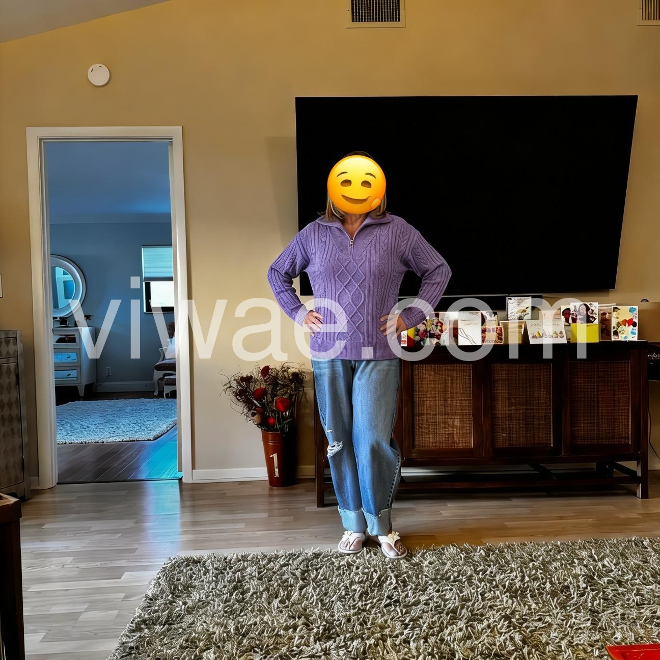 Nice soft sweater. Color and fit were as expected. Washes and dries well. Nice and soft and warm without being real bulky. I like it.