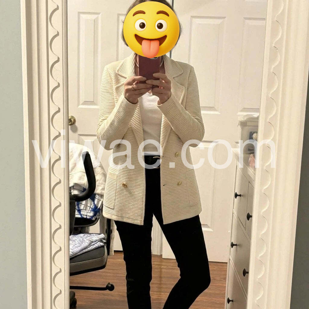 The ribbed texture is gorgeous and makes it look much more expensive than it is. The gold buttons add such a classy touch. Fit is true to size and very flattering.